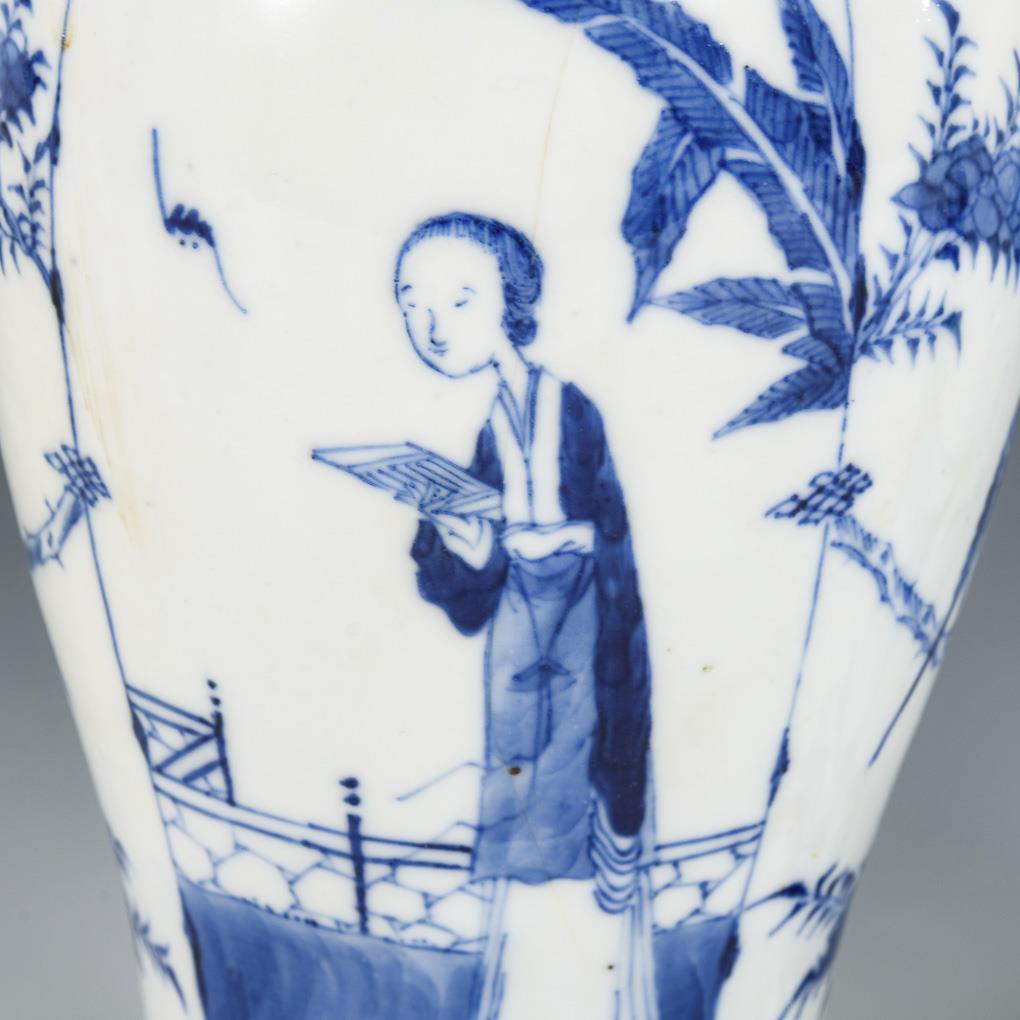 Delicately painted pictorial cartouches with reading lady and bird on branch. Both lids restored.