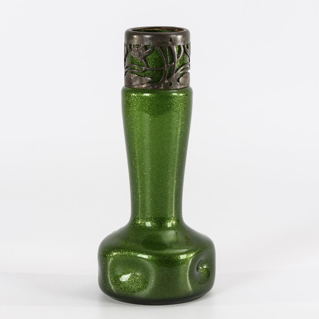 Art Nouveau vase with metal mounting. Harrach.