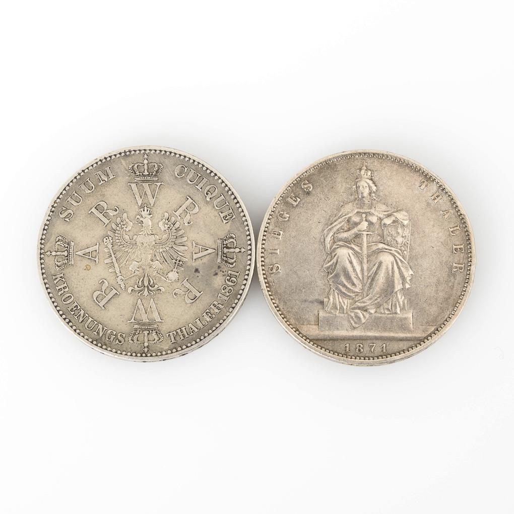 "Sieges Thaler 1871"; "Wilhelm Koenig von Preussen" / "Krönungsthaler 1861"; "Wilhelm Koenig Augusta Koenigin v. Preussen". Condition: very nice.
