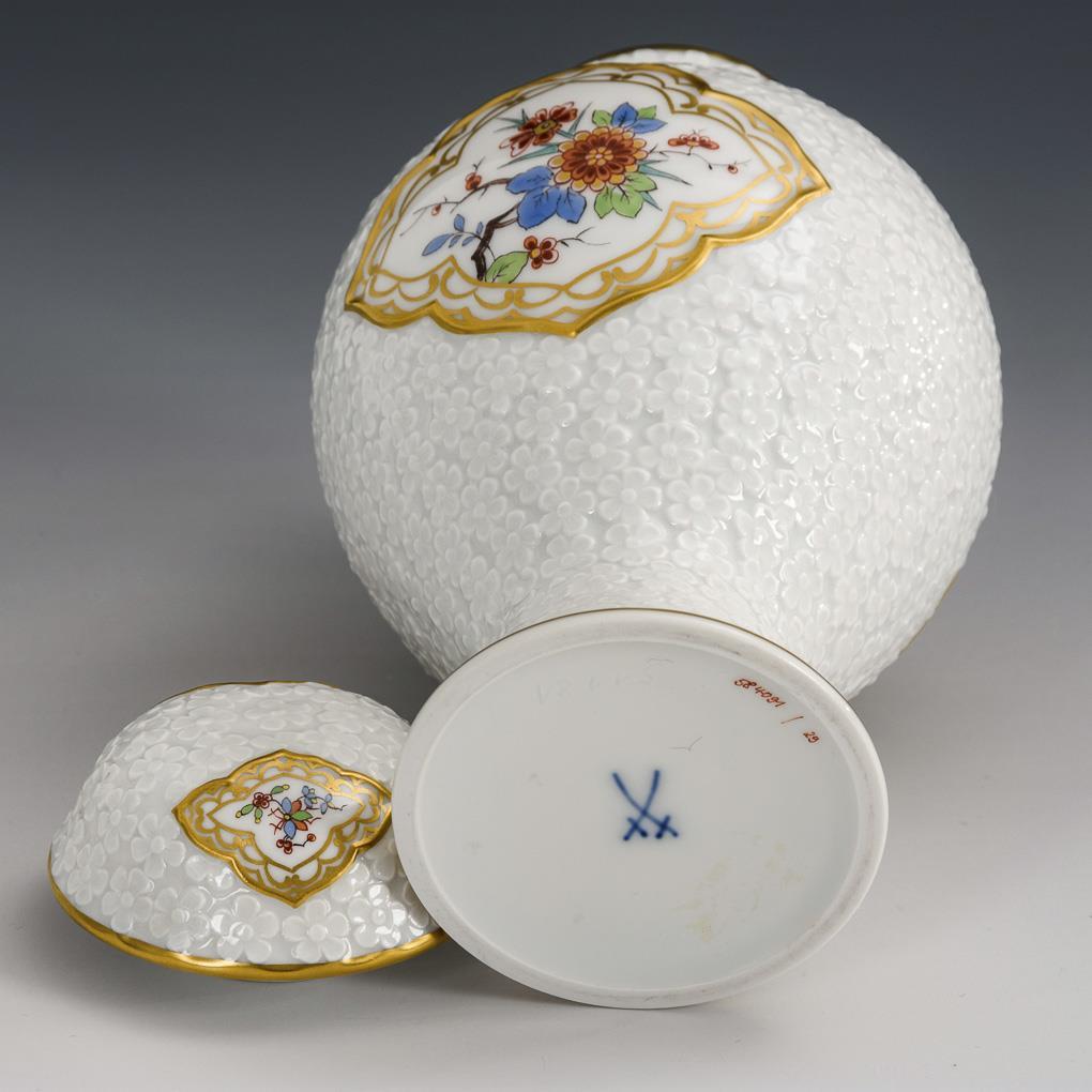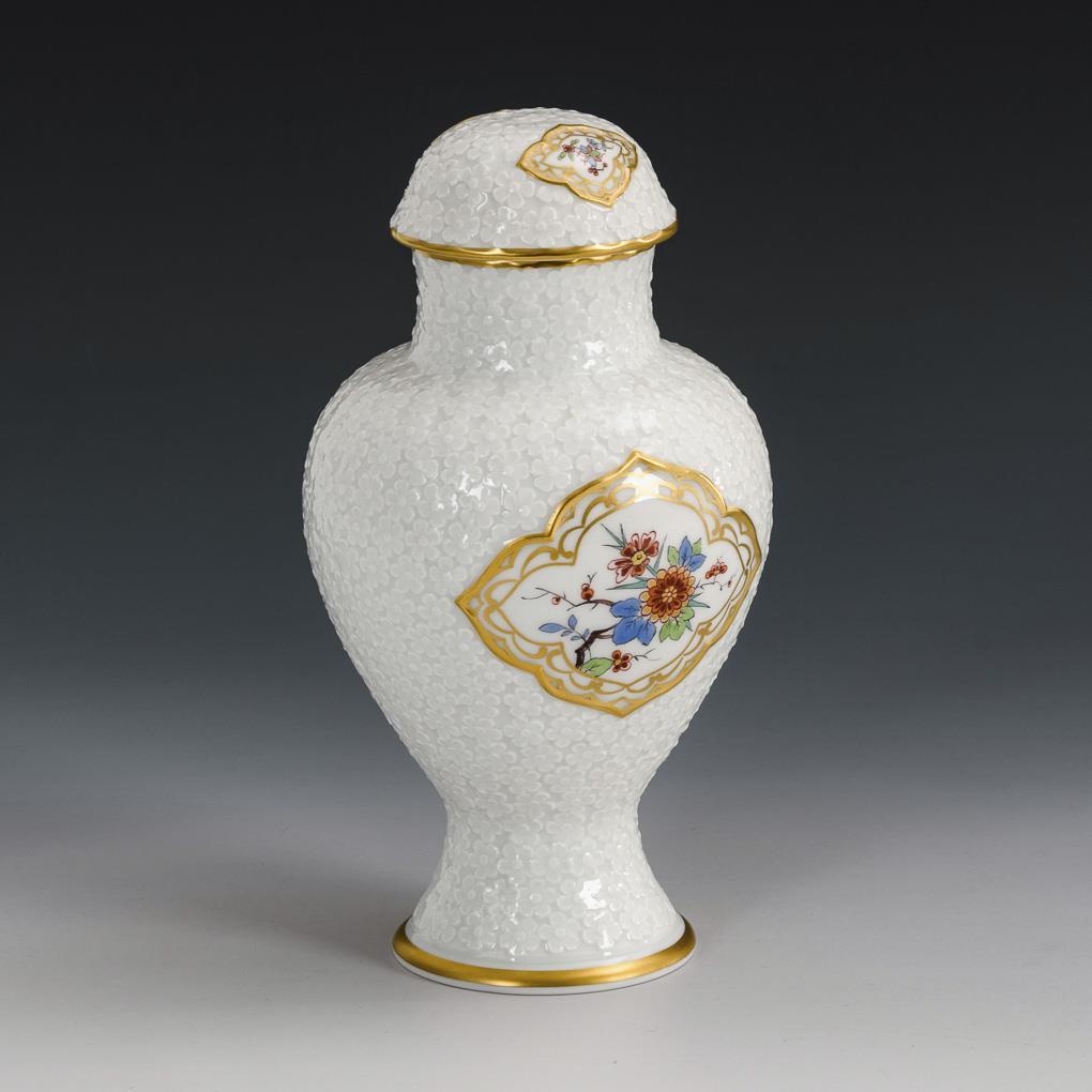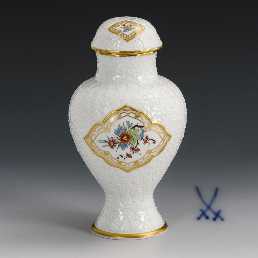 Lidded vase with floral relief. Meissen.