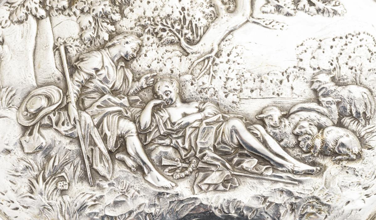 Relief silver bowl with shepherd scene.