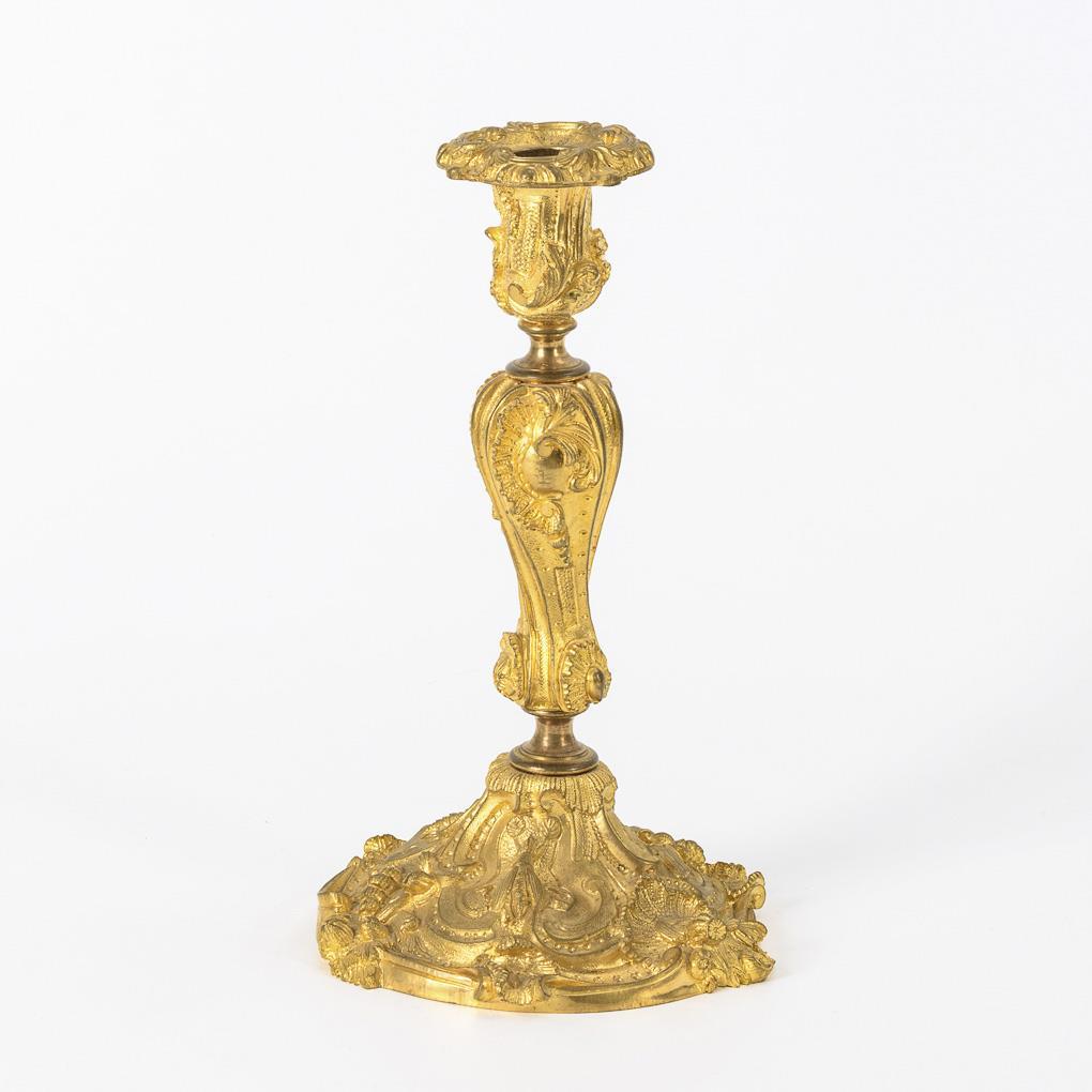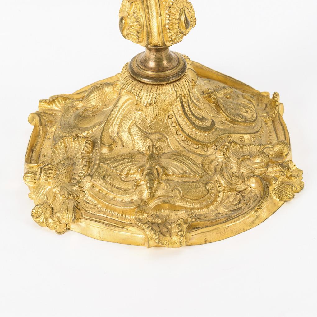 Bronze candlestick with exceedingly rich Reliefzier baroque style; including insects at the foot. Intermediate pieces probably supplemented.