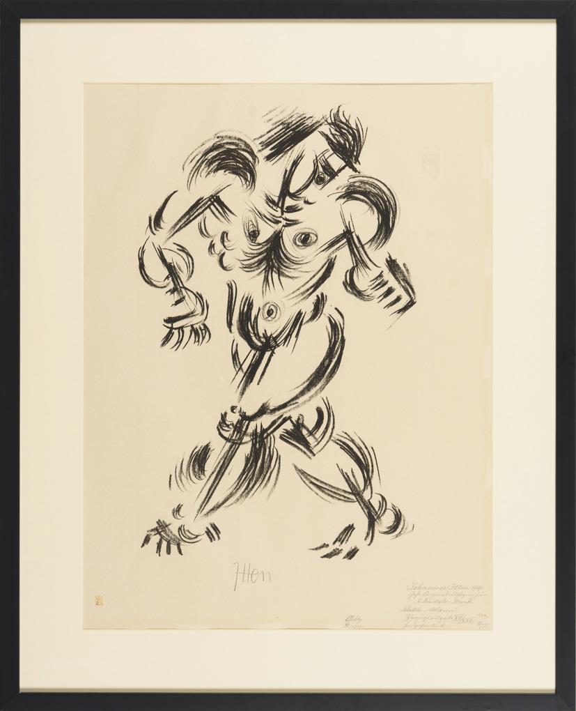 Inscribed "Johannes Itten. 1919 "Ten original lithographs I. Daidalos print. Sheet 6: "Man". Preferred edition XII/XXV. Hand-press print. Folder 28 [...]", "Goltz III. 1920"; from the folder "Frau Agathe und allen meinen Schülern gewidmet", 1919.