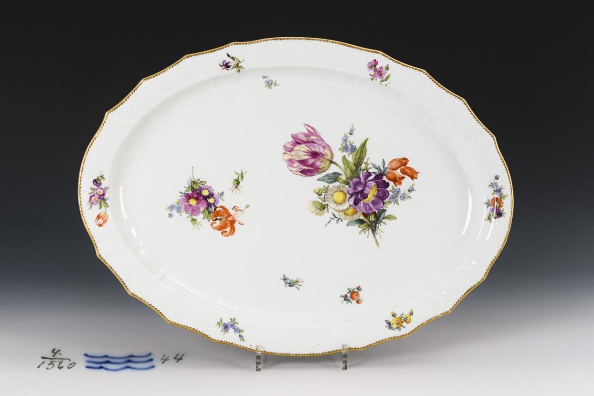 Form "Neuozier". Oval plate with a bouquet of flowers with a tulip in the mirror and small bouquets and stalks of flowers in the mirror and on the flag.