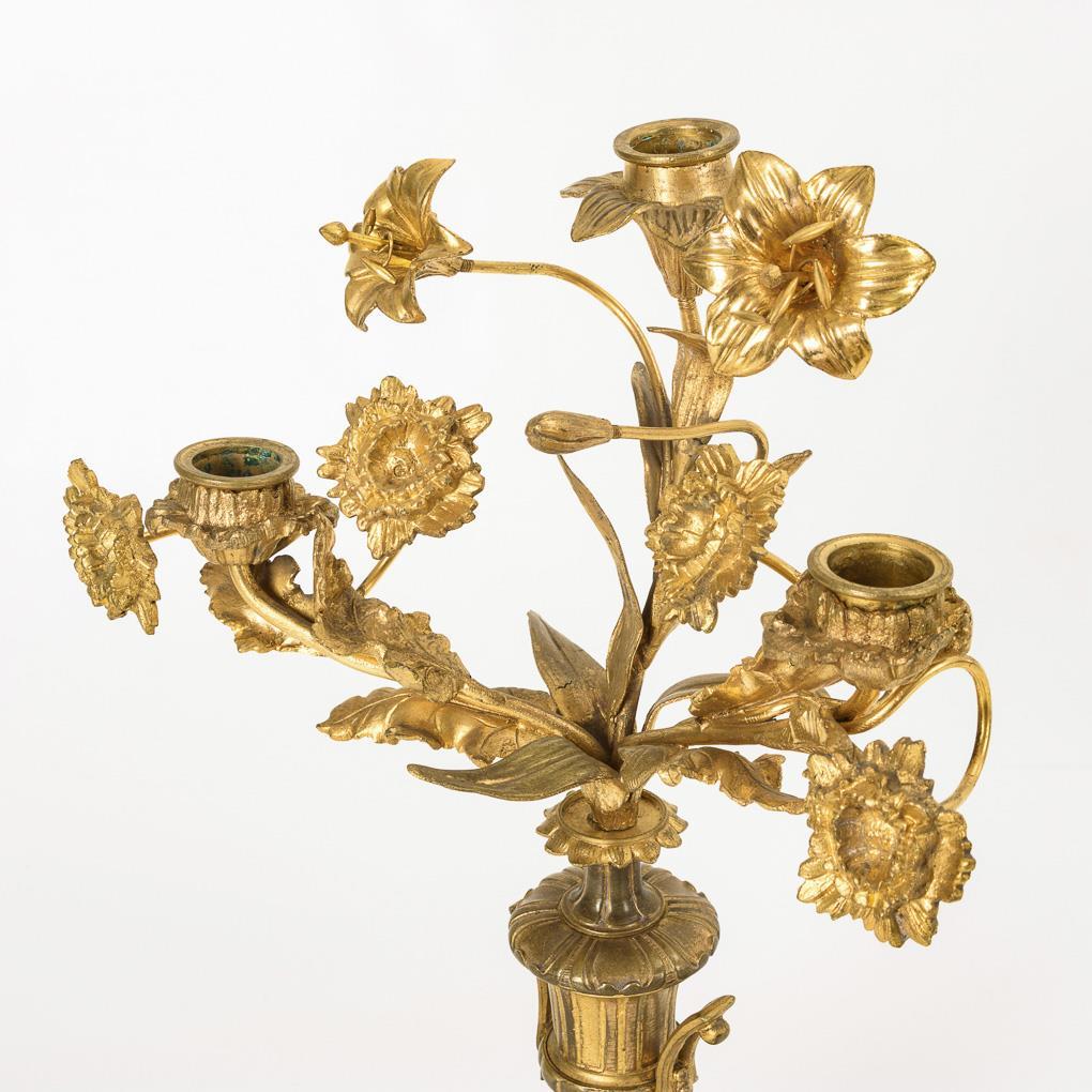 Candlestick with baroque designed pedestal and vase shaft. Vegetable candelabra arms and spouts. Few small cracks, gilding rubbed.