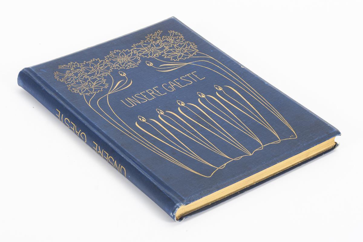 "Guestbook. A hostel book for the house. With an accompanying words by Emil Frommel and drawings by S. Schlatter". Basel o.J., 11th edition. Only 2 entries (1906 and 2014). Scarcely signs of age/use.
