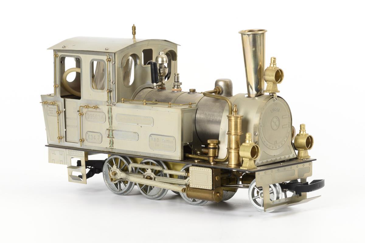 Steam-powered model for gauge II G, 45 mm. Prototype: tender locomotive No. 23 (1917 by the company Jung for the Pillkaller Kleinbahn). Scarcely played with, function not tested.
