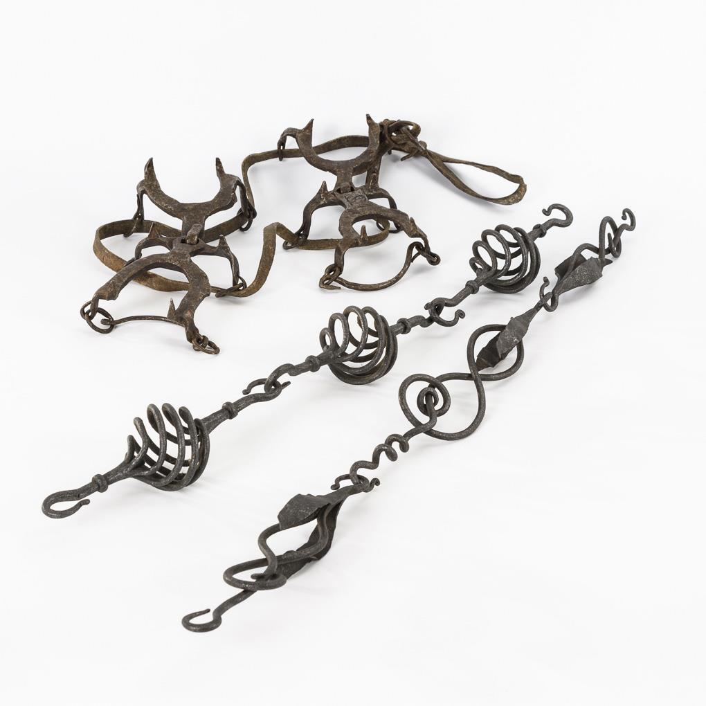 Iron hand-forged, leather straps. L decorative links maximum 32 cm.