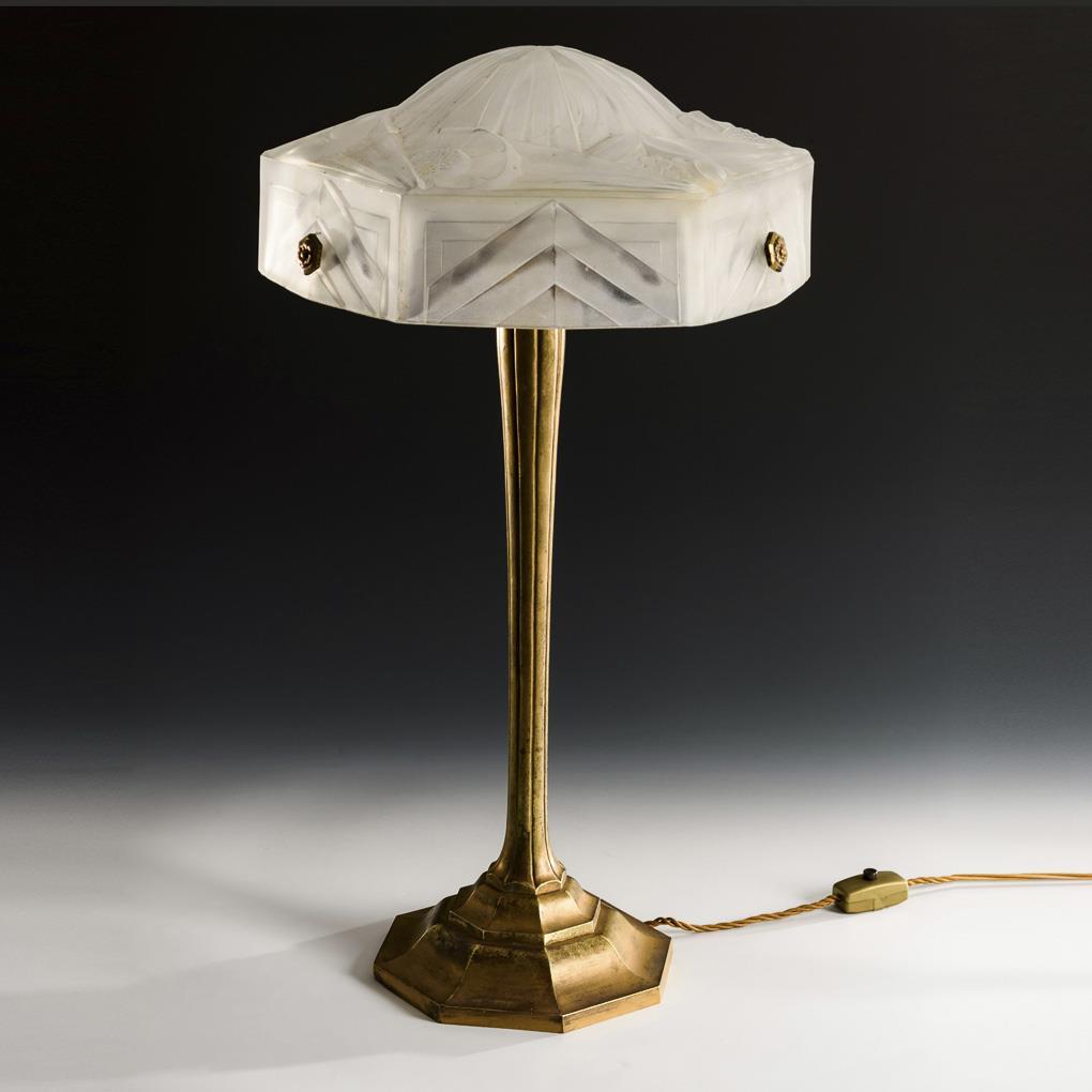 Large art deco table lamp. Degué.