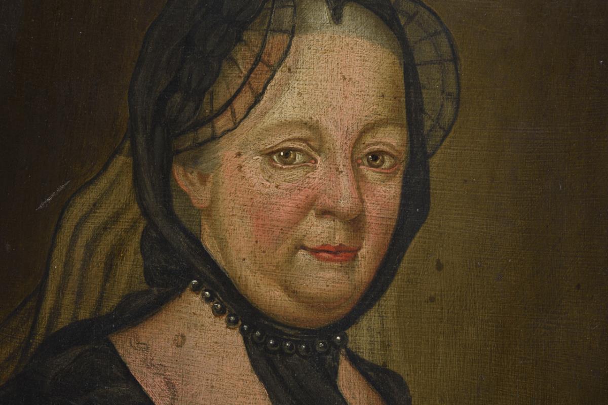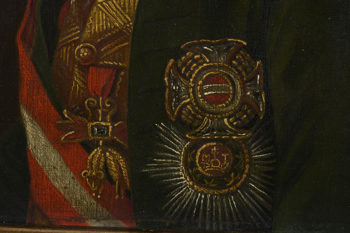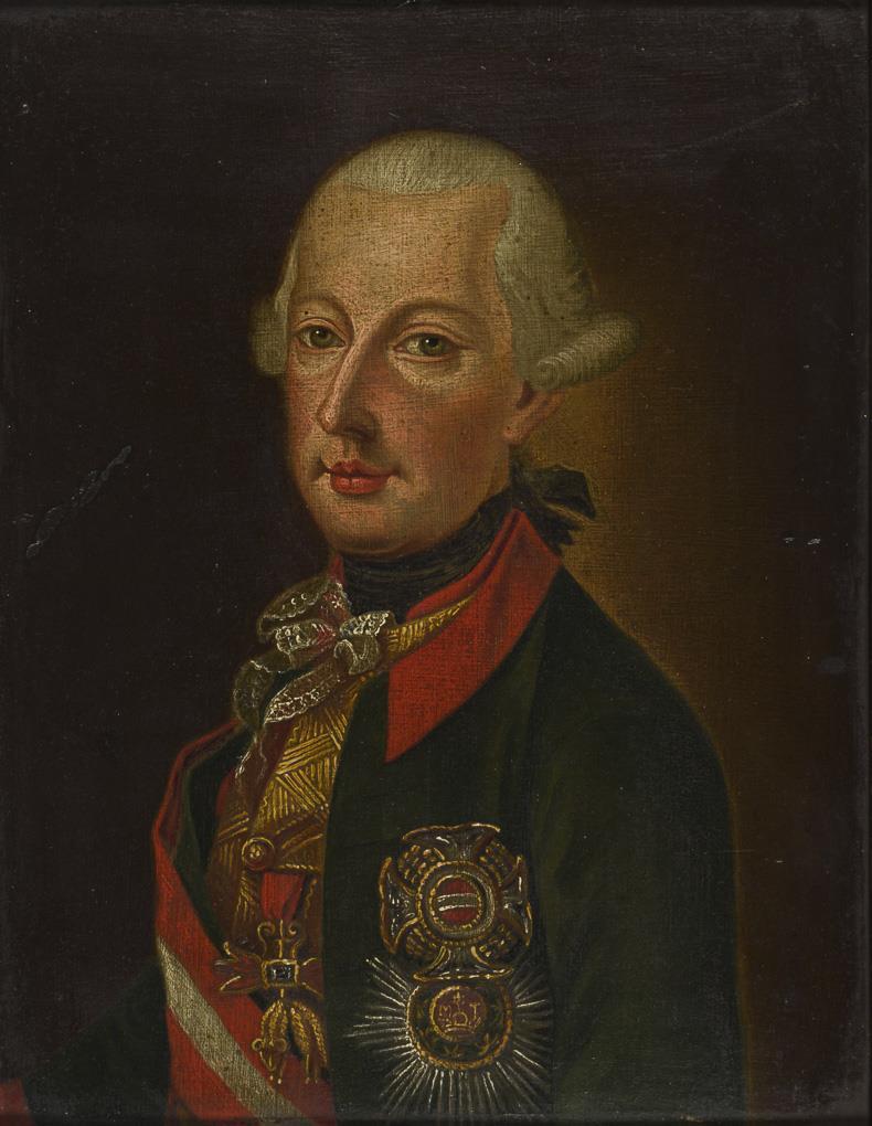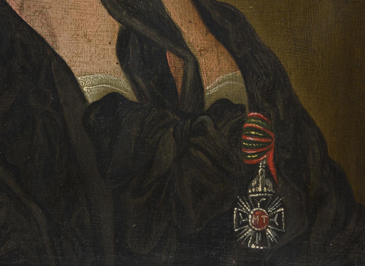 Portrait of the Habsburg in black dress as well as her son in frock coat with star of the Hungarian Order of St. Stephen and the Order of the Golden Fleece. Each traces of age.