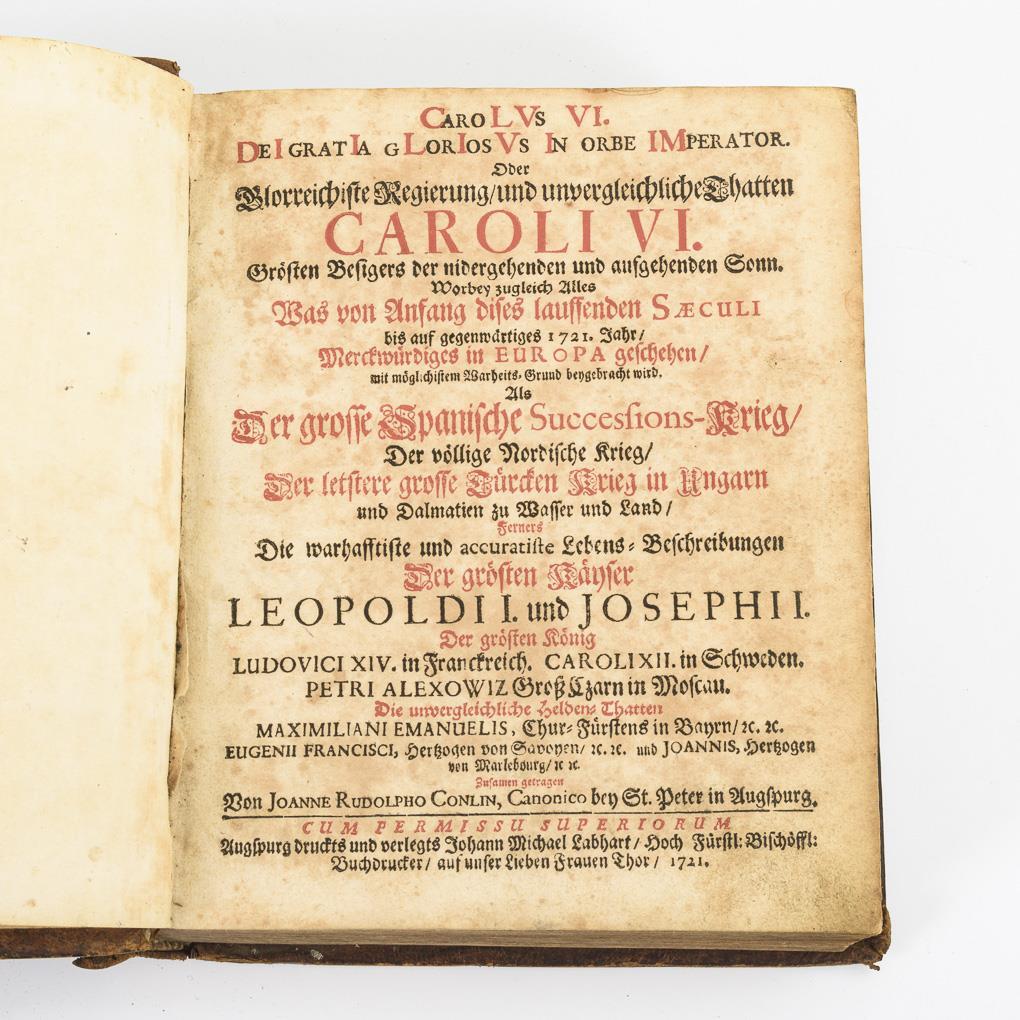 Includes also: Spanish Succesions War, Northern War, Turkish War in Hungary and Dalmatia by sea and land, biographies of Leopold I and Joseph II and other rulers of the time. Title page, (10), 764, (28) pages. Leather binding. Time signs of age and wear.