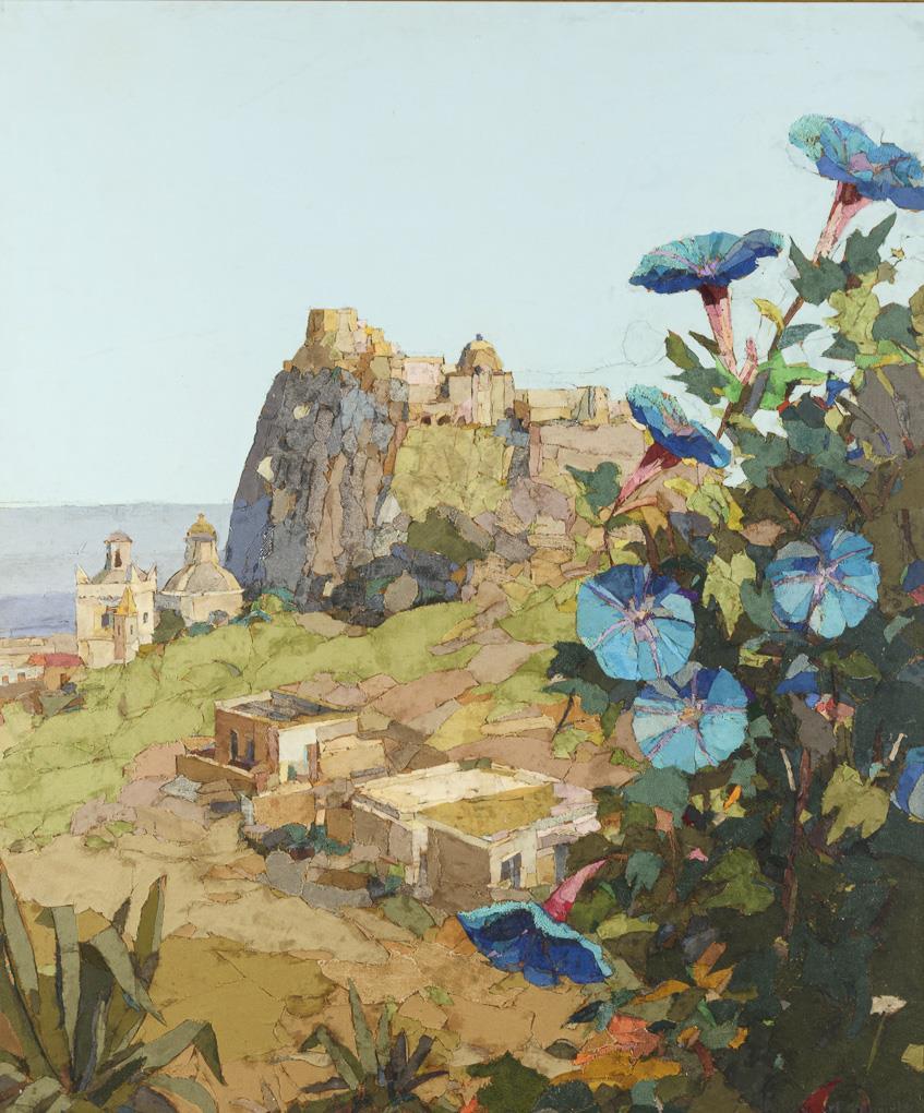 Collage of different fabrics. Italy. Signed lower right with addition Ischia.