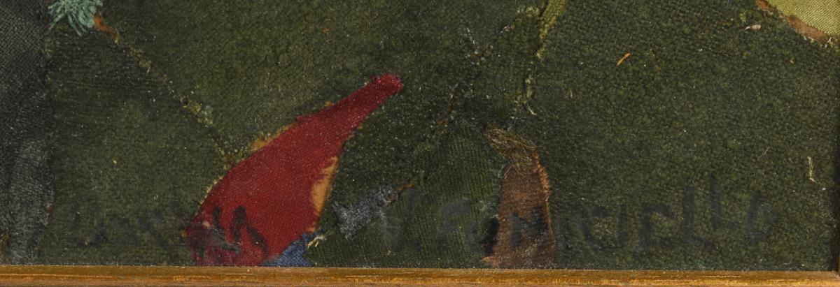 Collage of different fabrics. Italy. Signed lower right with addition Ischia.