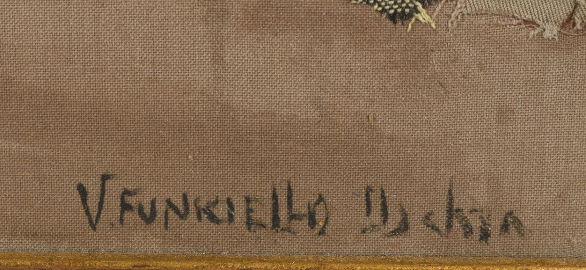 Collage of different fabrics. Italy. Signed lower right with addition Ischia.