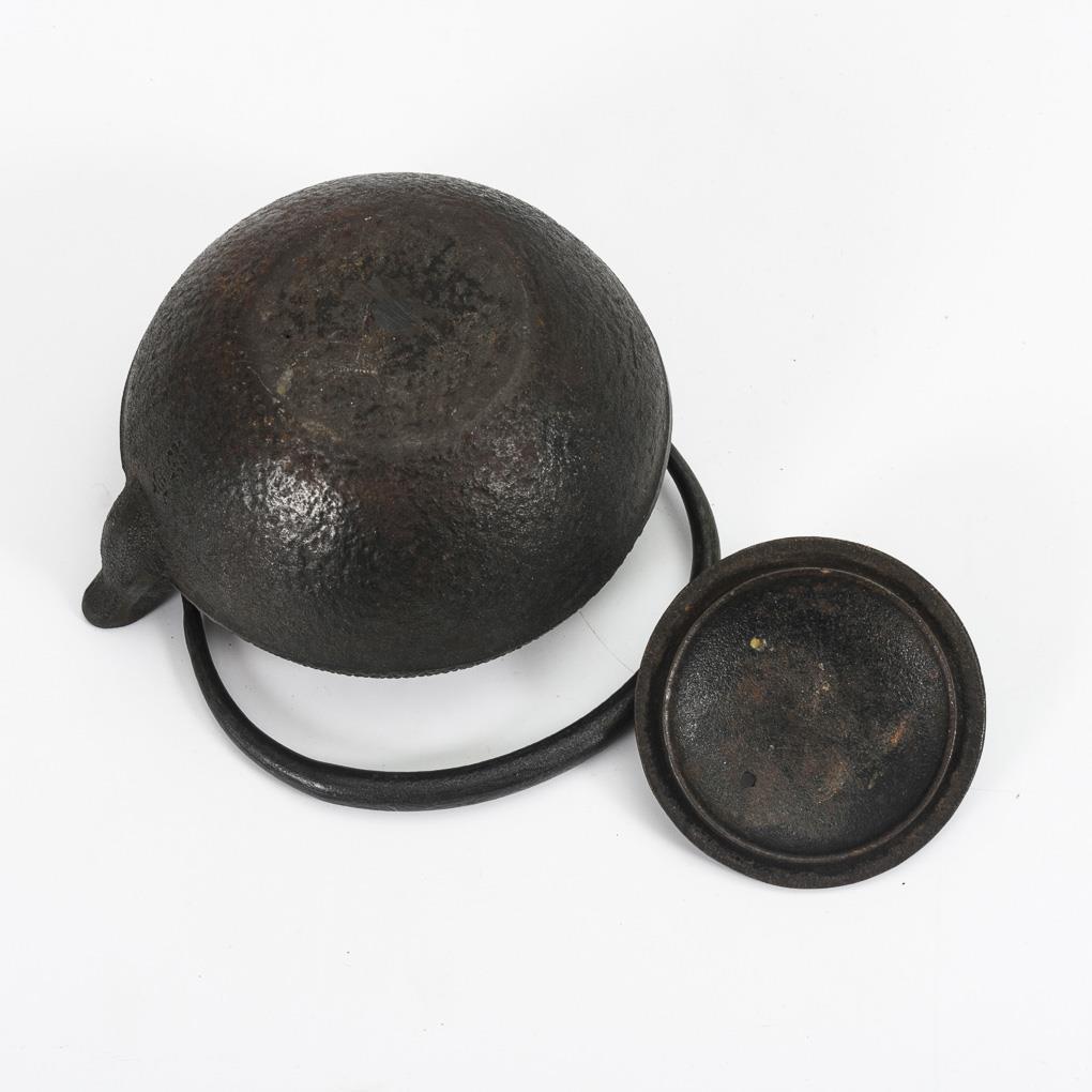 All parts made of iron. Pot H 13 cm, with handle. Teapot warmer 9 x 13 x 13 cm.