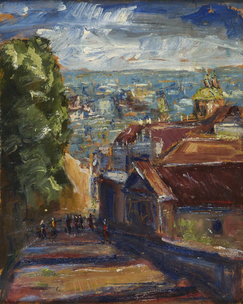 Oil/paper. Indistinctly signed lower left. Circa 1920.