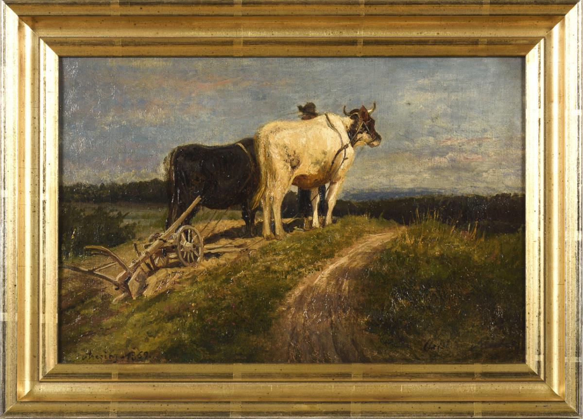 Oil/canvas. Signed lower right, indistinct addition lower left, adhesive label of Galerie Heinemann Munich on verso. Dated: 1869.