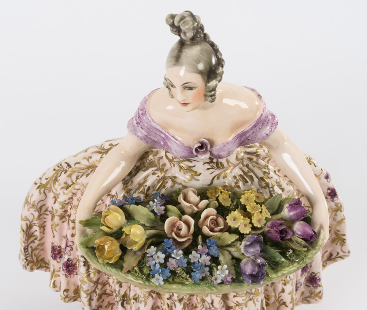 Biedermeier lady with flower basket.