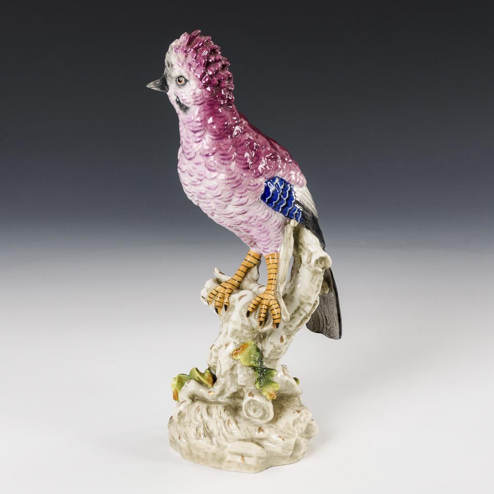 Sitting on a tree stump, brightly colored painted jay. Beak tip bumped.