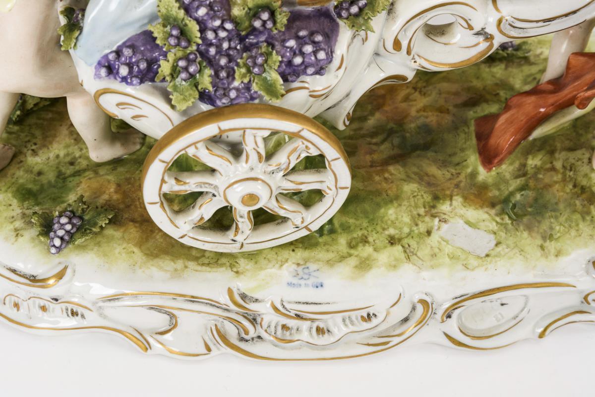 Polychrome painted, gold decorated. H 22 cm, L 28 cm.
