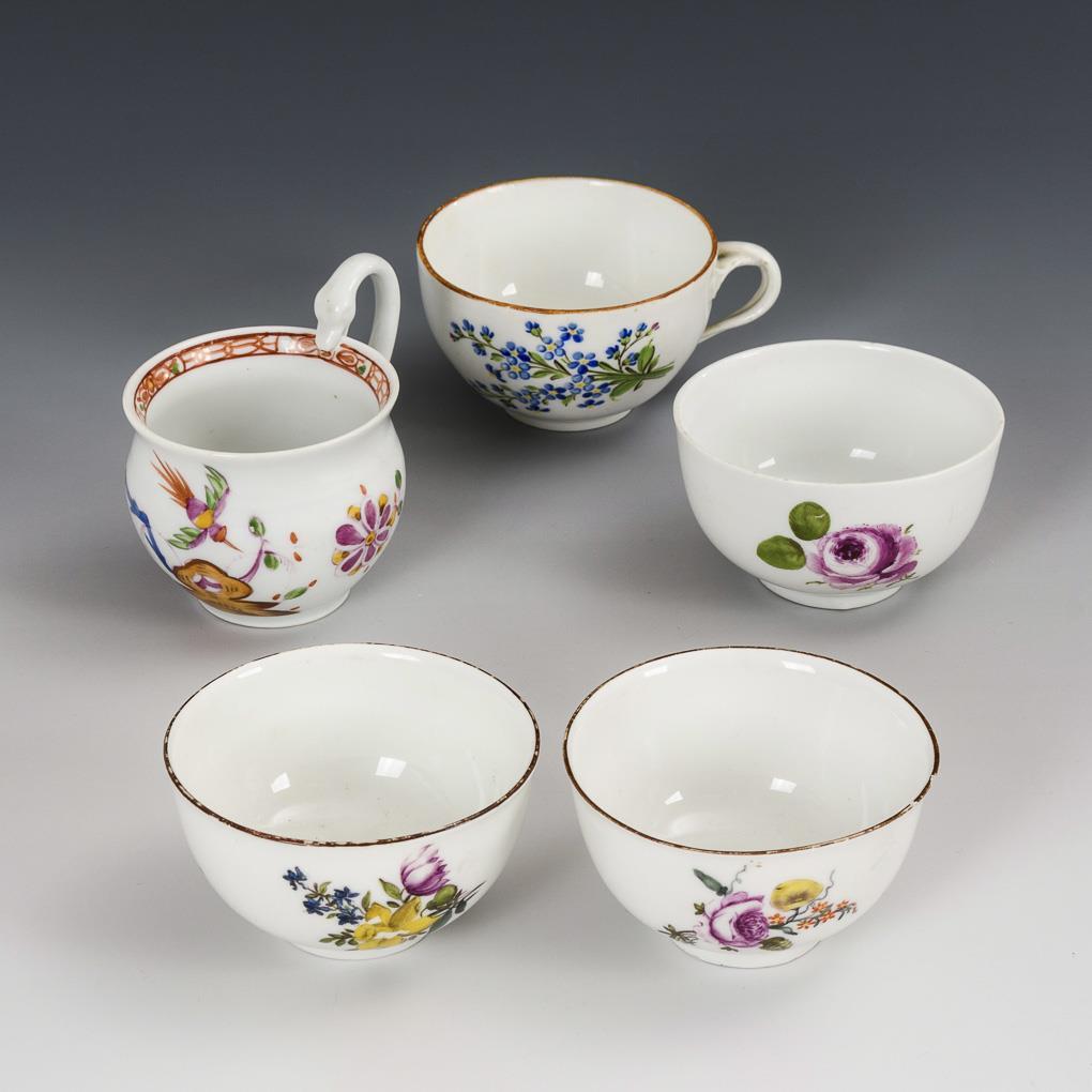 3 baroque koppchen and 2 cups. Meissen.