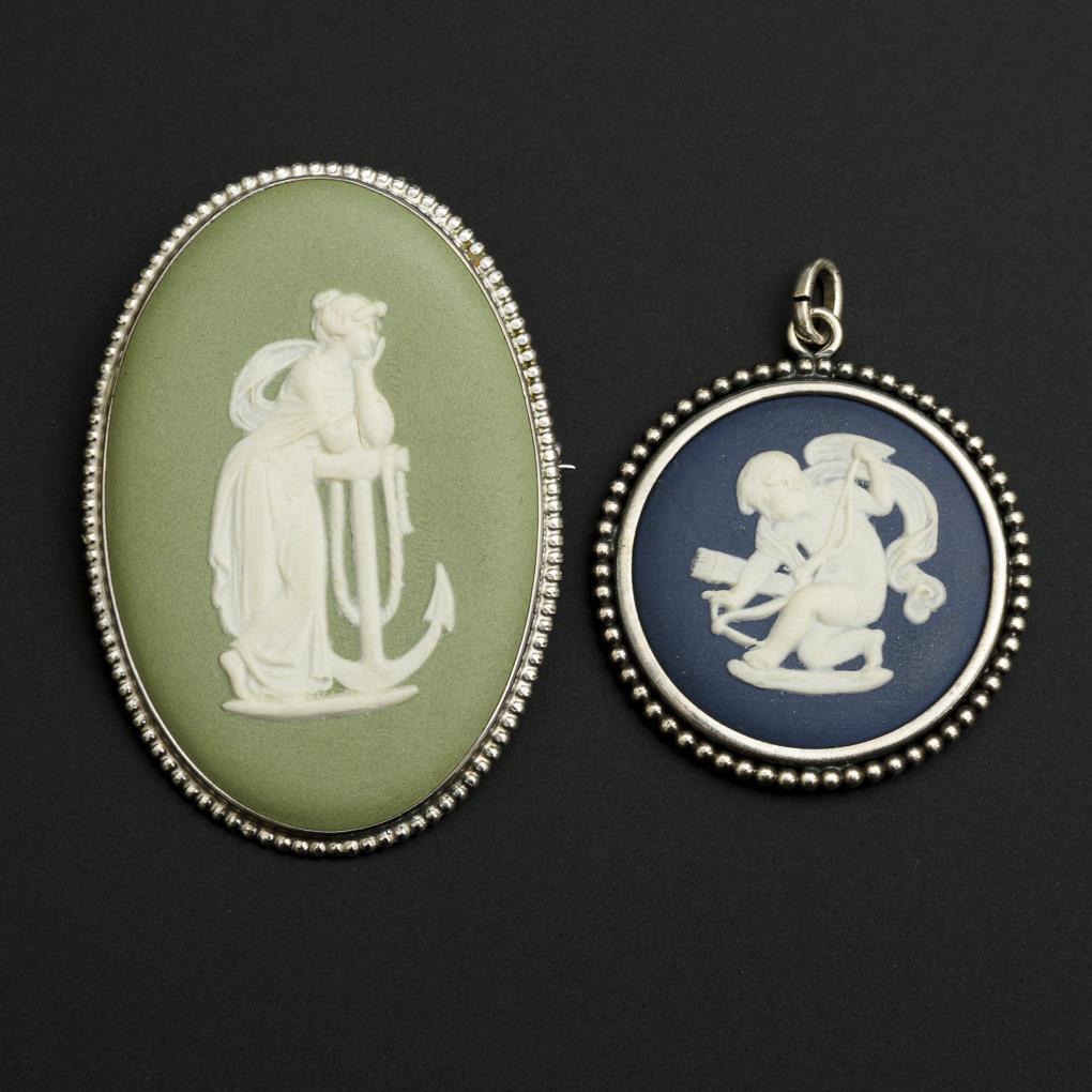 Relief pendant and brooch, Wedgwood.