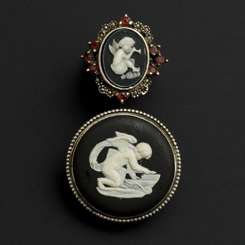 Silver 925 stamped, tested. Brooch hallmarked: London. Ø 3 cm. Ring size 55. 7.9/8.8 g.