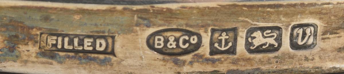 Scrolling lion/city mark/year/company mark B & Co. hallmarked. 1970/71. Birmingham.