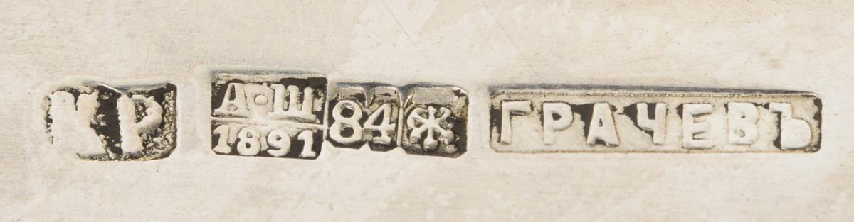 84 Zolotniki/City mark Saint Petersburg/Foaming Master A. T. Shevyakov 1891/Master mark KP/Company stamp punched.