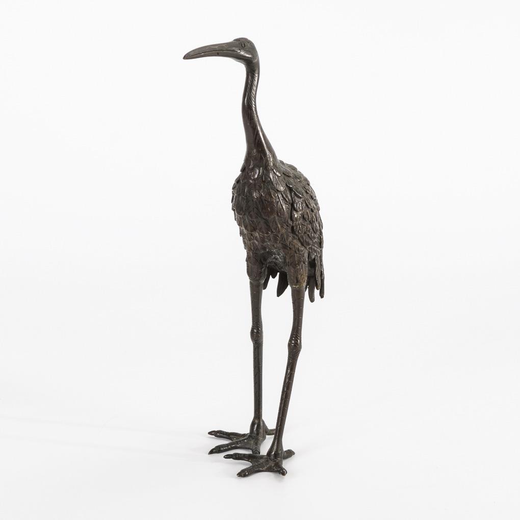 Standing crane in attentive posture. Toes somewhat bent, solder traces on leg attachments.
