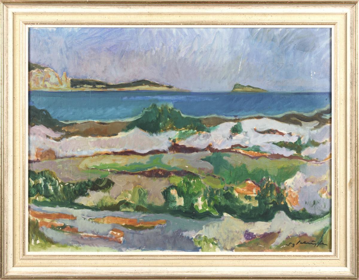 Indistinctly signed: Sunny coastal landscape