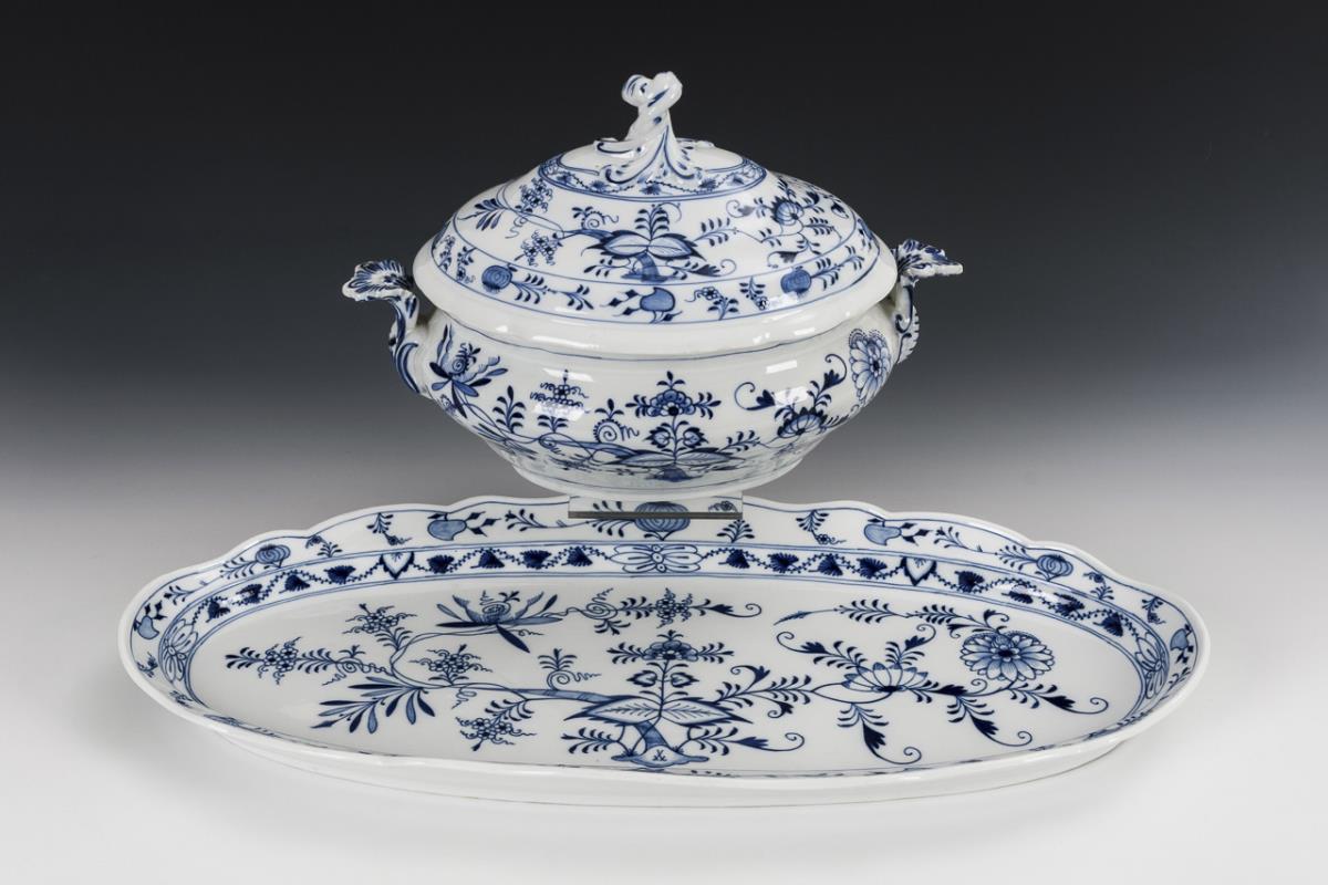 Underglaze blue painting. Fish plate L 60 cm, tureen L 35,5 cm.