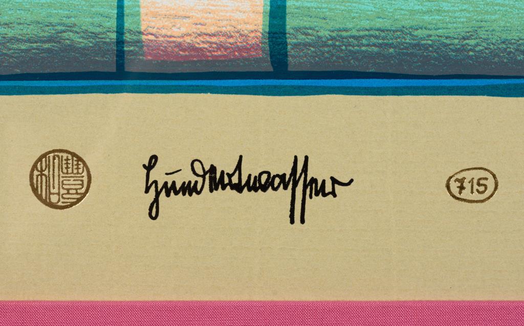 Farbsiebdruck mit Metallprägungen.Exemplar: 239/4200.
