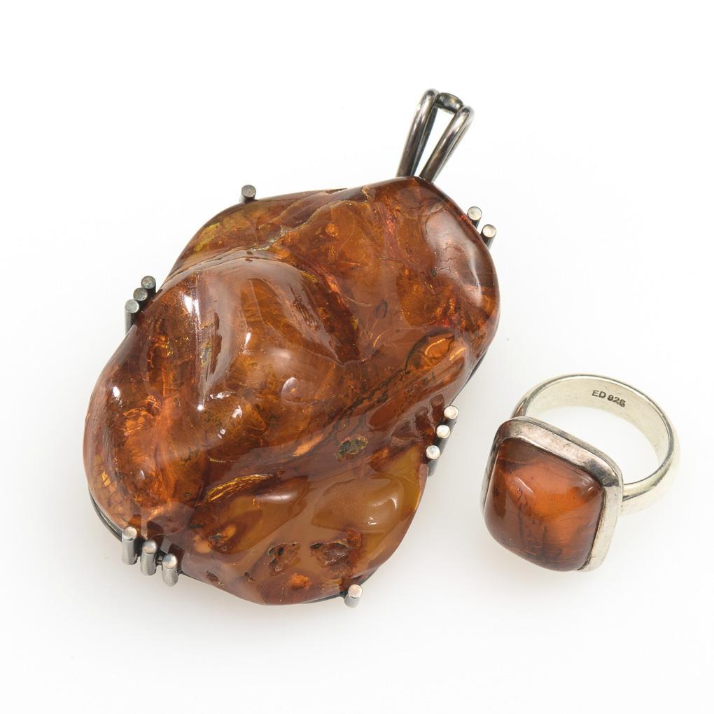 Silver 925 stamped. Pendant 7.5 x 4.5 cm. Ring size 58. 43.9/11.7 g.