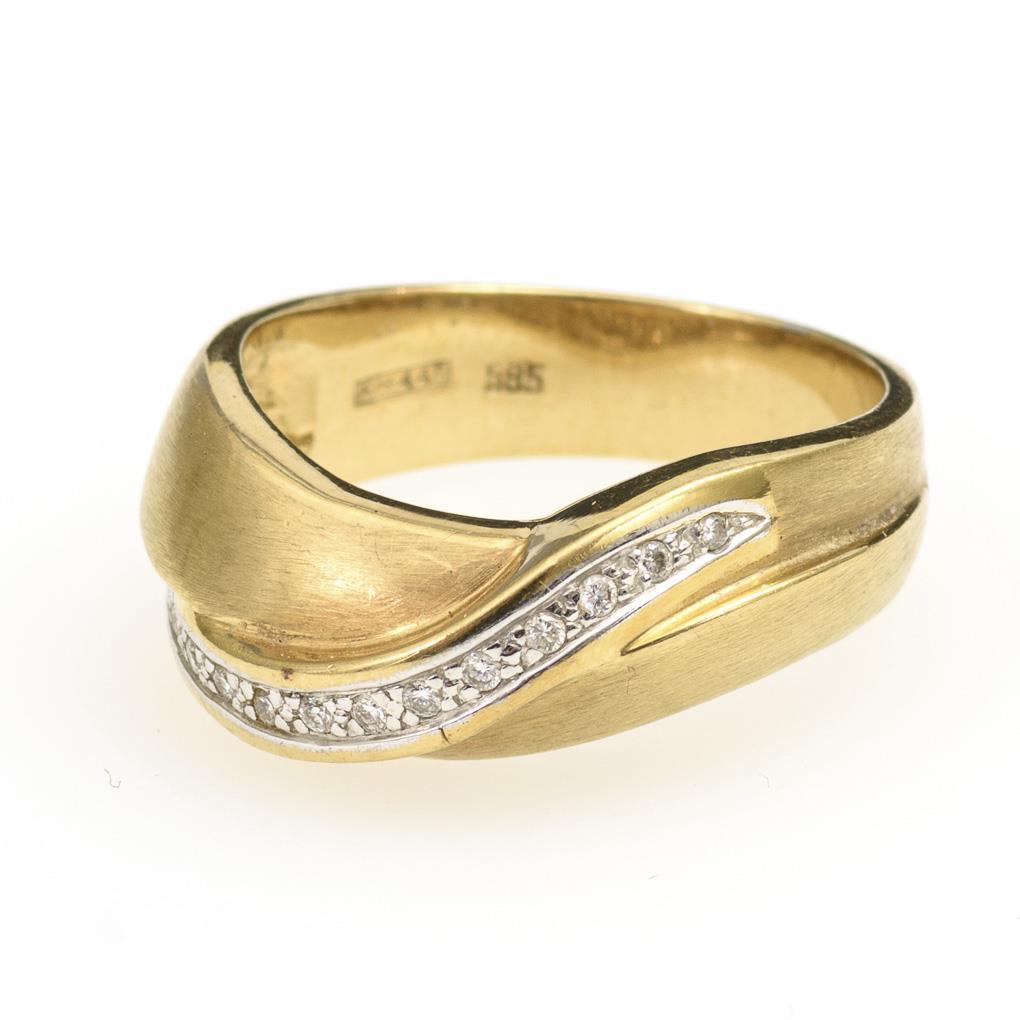 Yellow gold 585 stamped. Ring size 55. 6.2 g.
