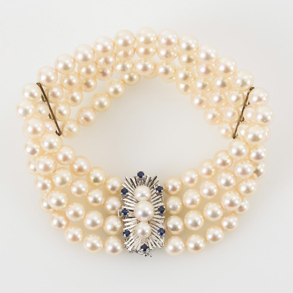 4 row cultured pearl bracelet with sapphires.