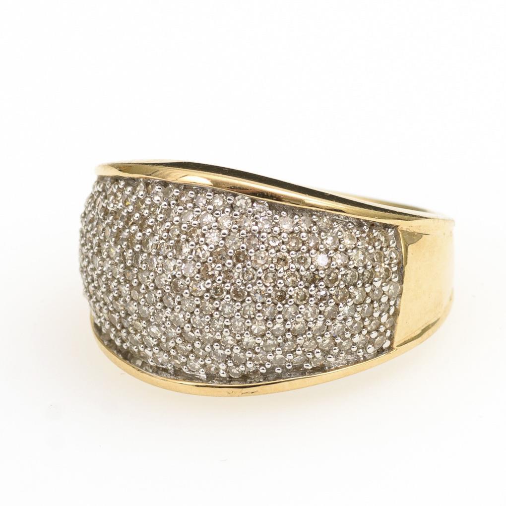 Diverse diamonds in pavé setting, in wide gradient rail.