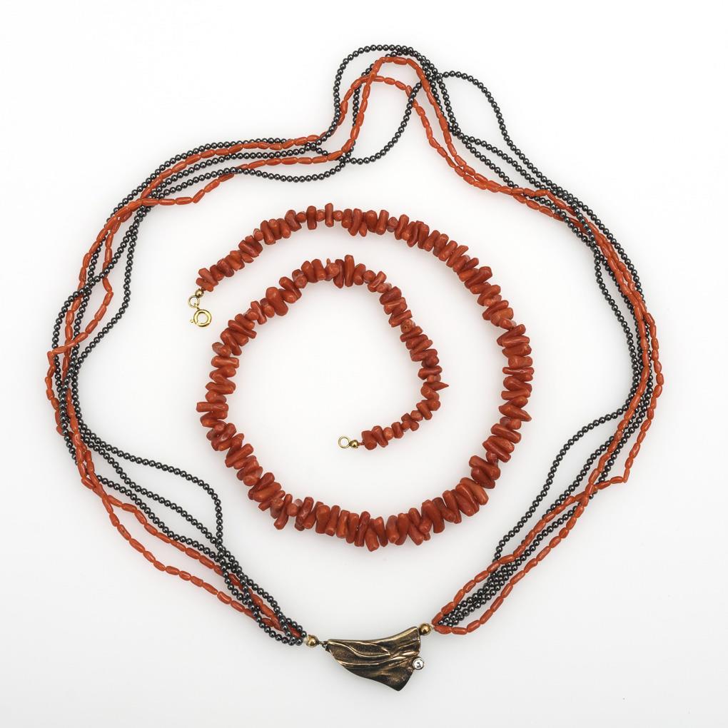 2 chains with coral and hematite.