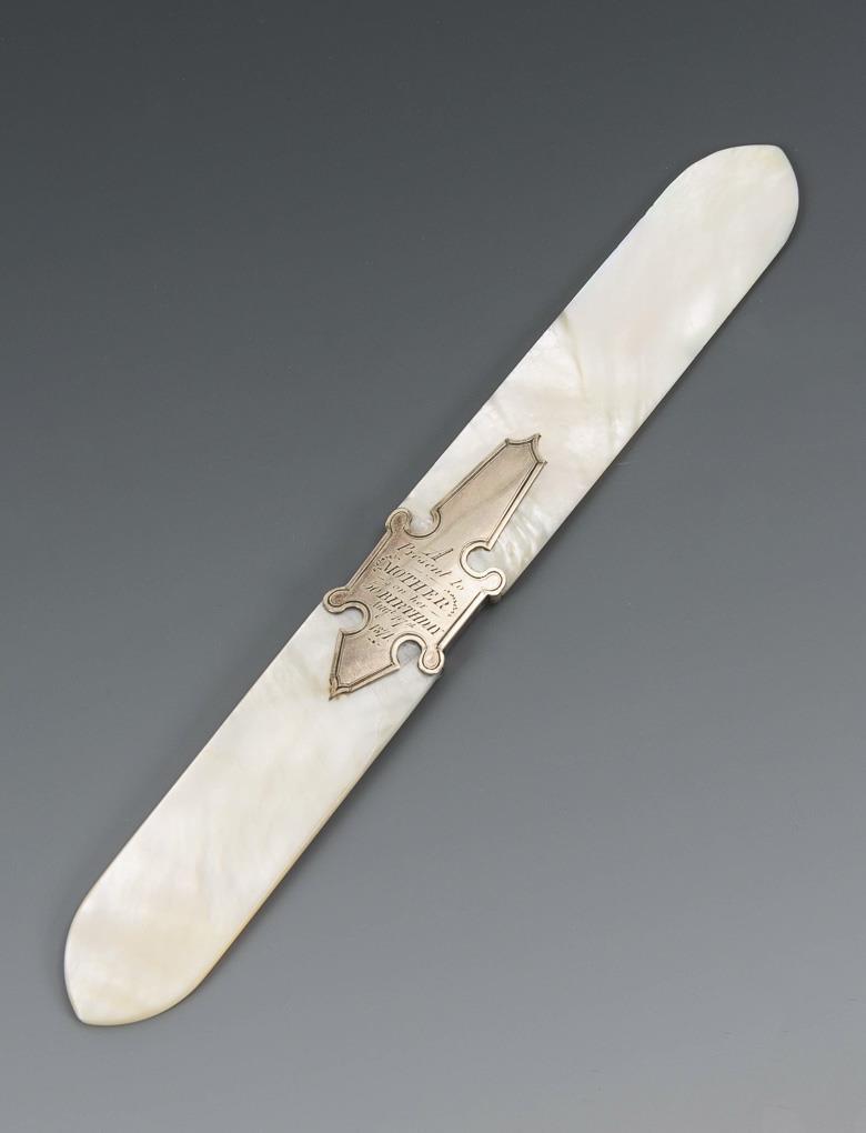 Silver, mother-of-pearl, glass. L 24/25 cm.