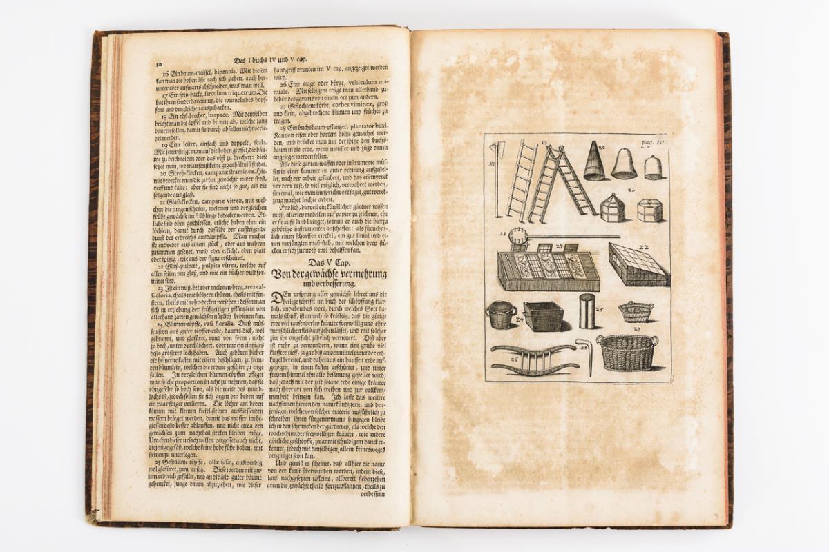 "Oder sonderbare Vorstellung Wie ein wohlerfahrener Gärtner nicht allein die schönsten Luft-Küchen-Baum- und Blumen-Gärten Auf unserm teutschen climate füglich anrichten, But also all sorts of rare flowers, plants and trees to raise, maintain and protect from happening damage".