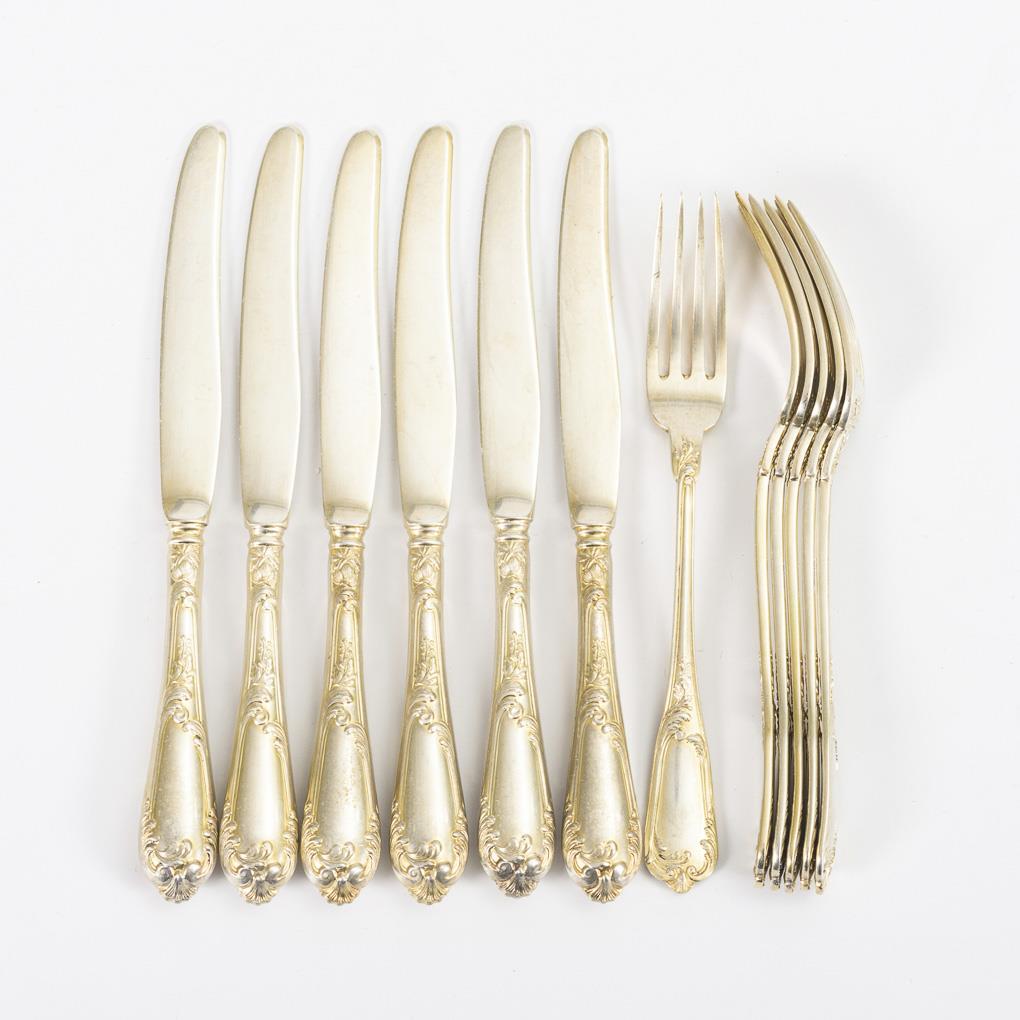 6 knives and 6 forks with relief decoration.