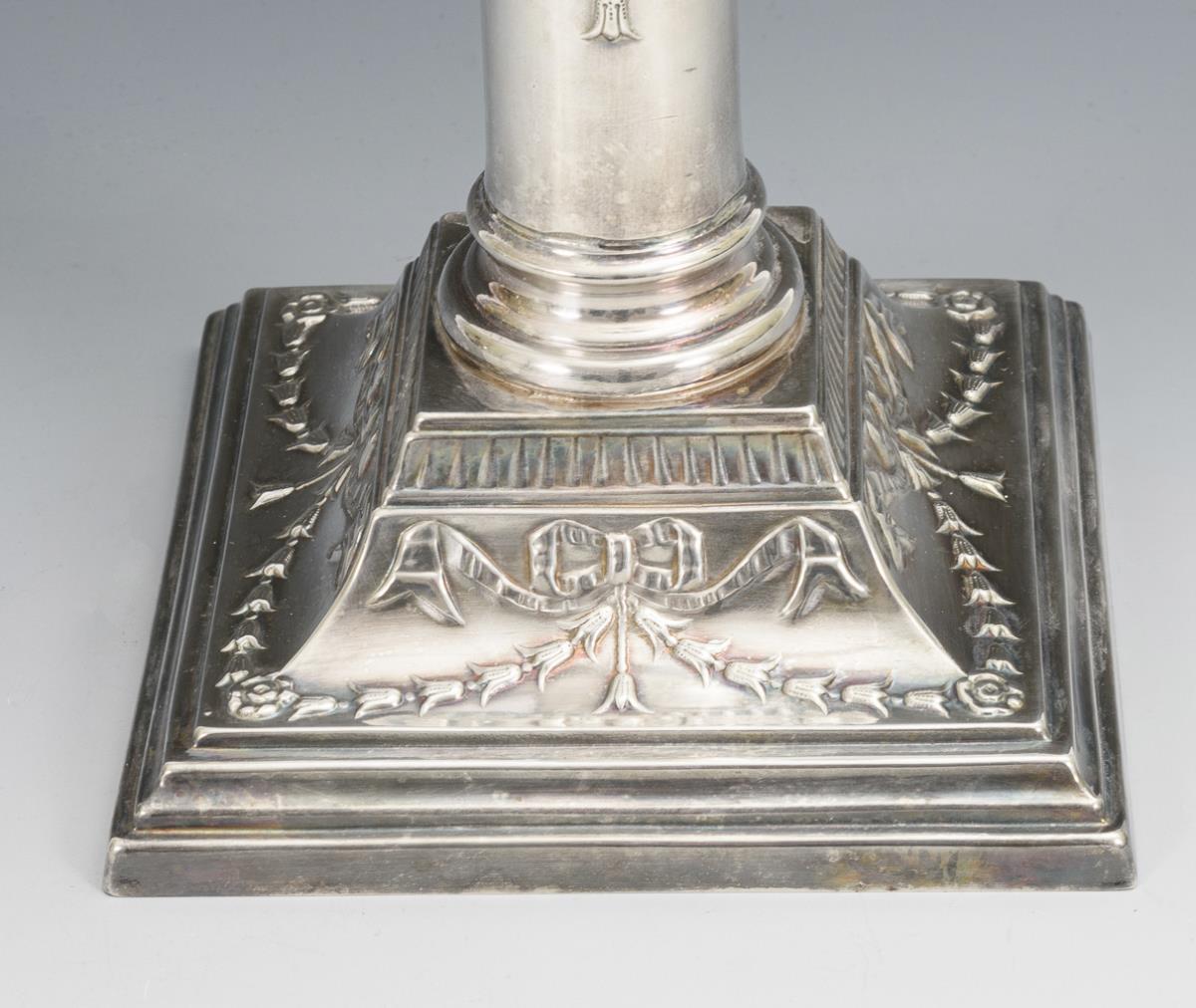 1-flame candlestick in column form, with garland and bow decoration in relief. Minimal signs of age.