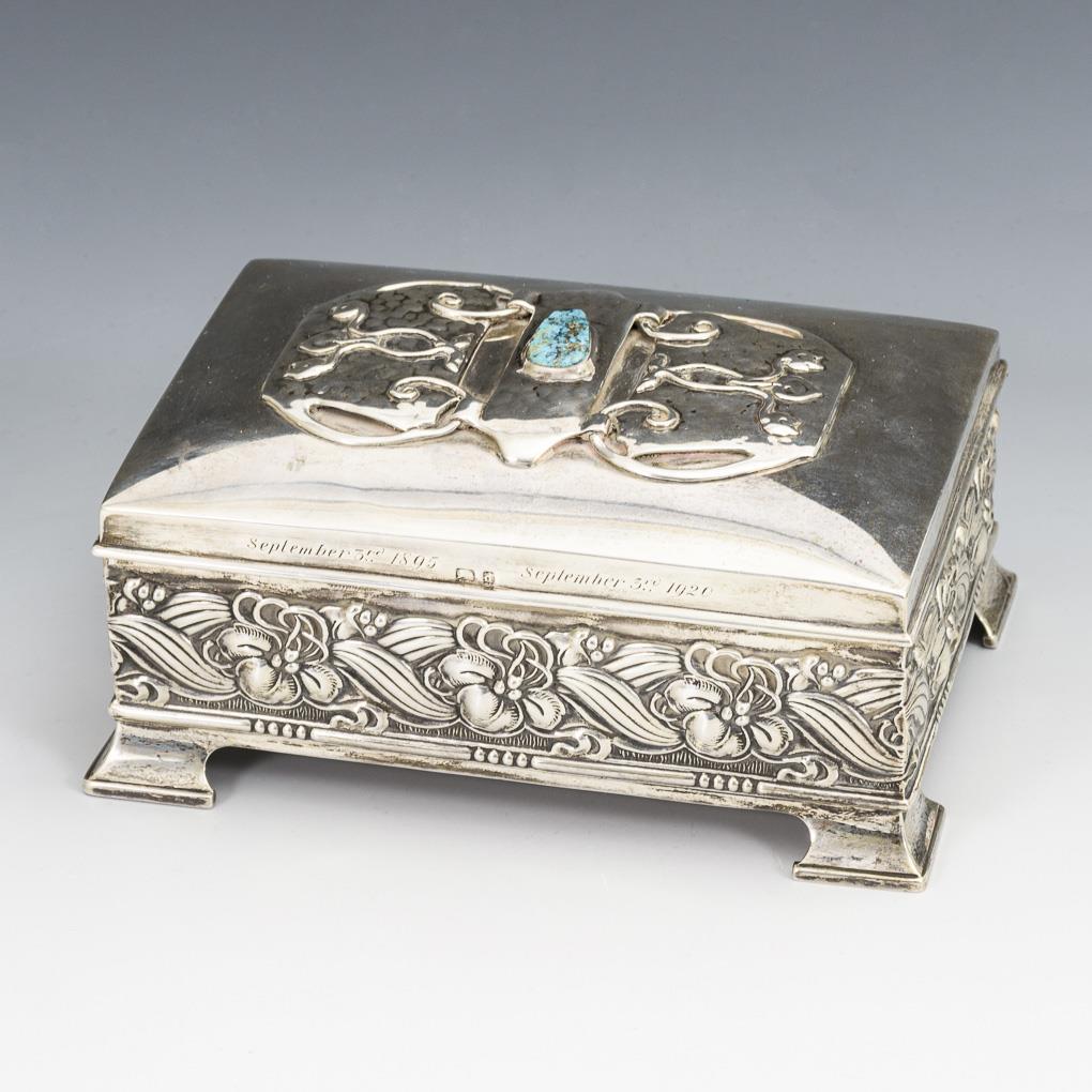 Art Nouveau casket with turquoise matrix. Horton & Allday.