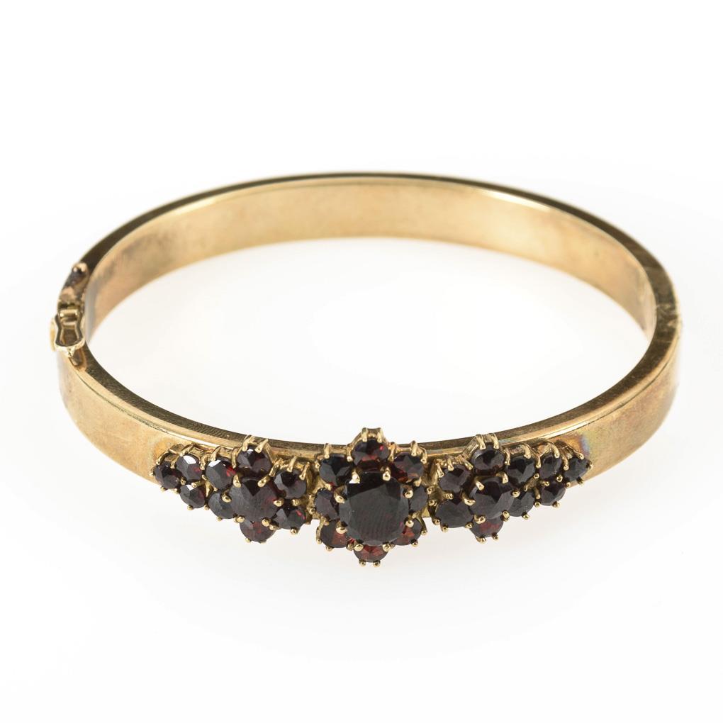 Oval hinged ring set with garnets. Box lock with eight-lock.