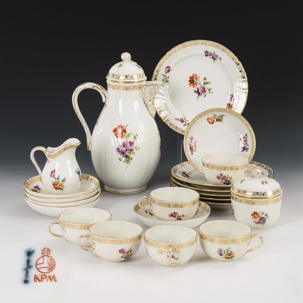 Coffee service with floral painting. KPM Berlin.