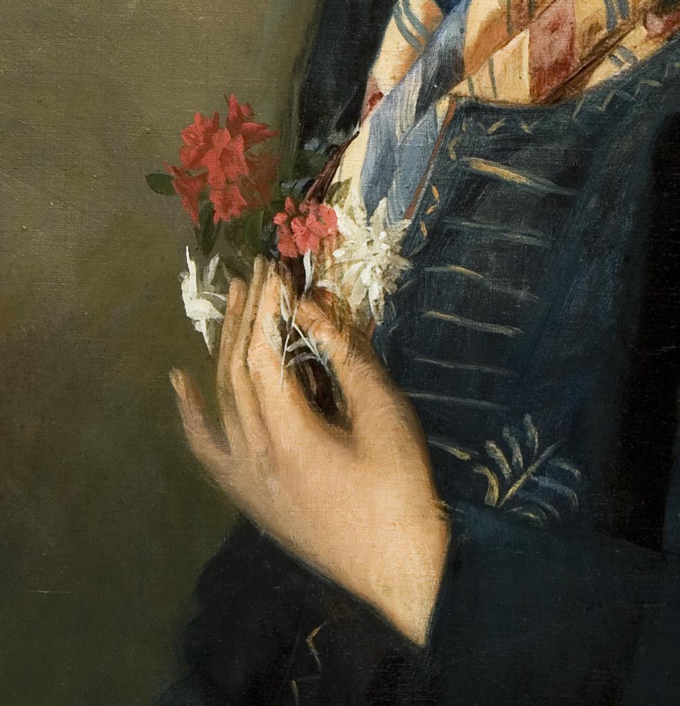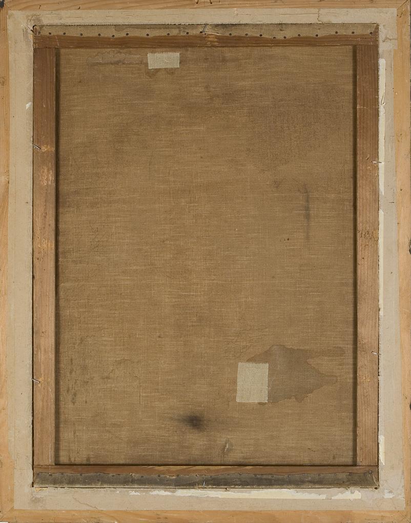 A concise character portrait with magical precision and specific charm. Original stretching frame, blackened mint profile frame. Rear two patches.