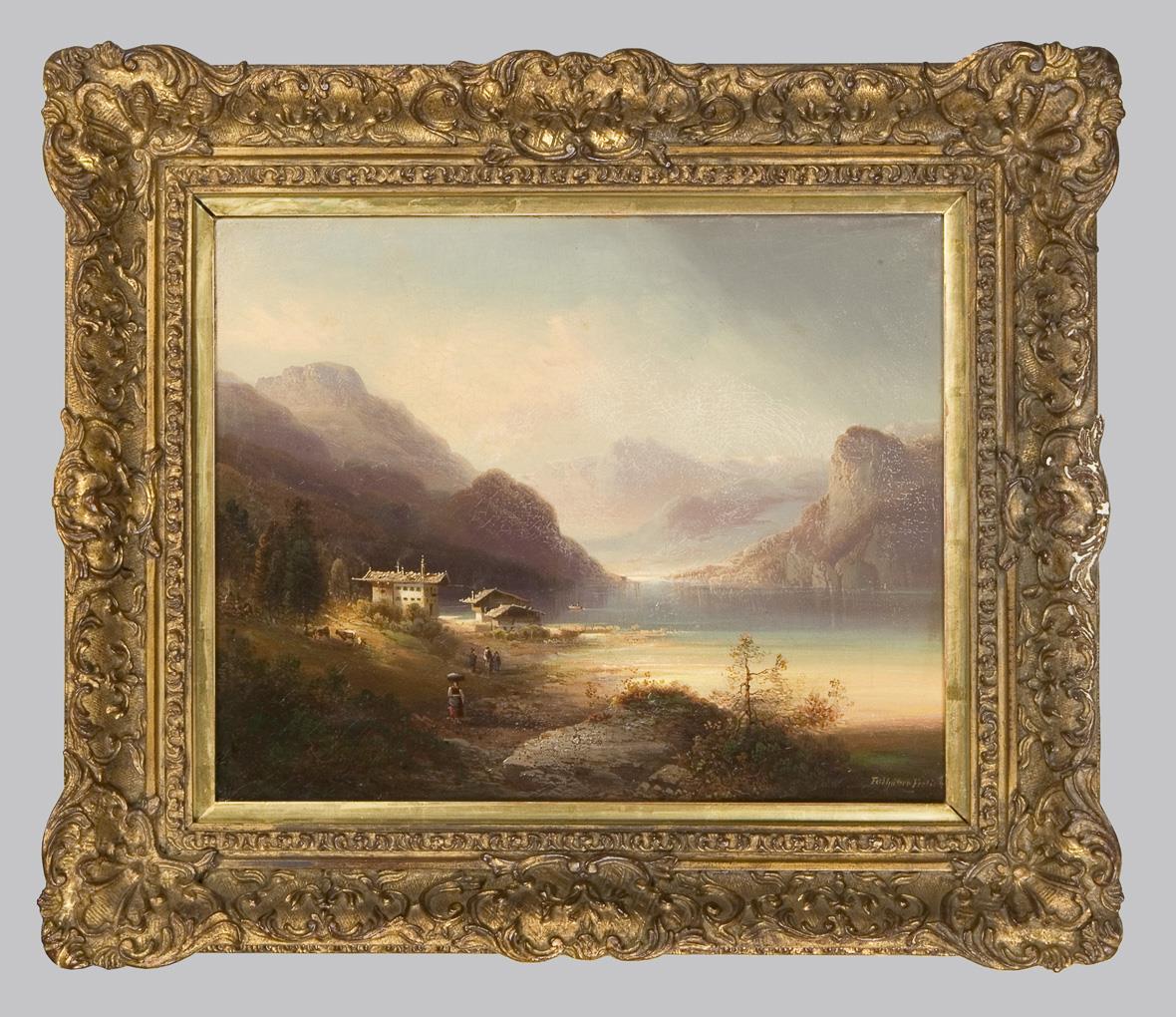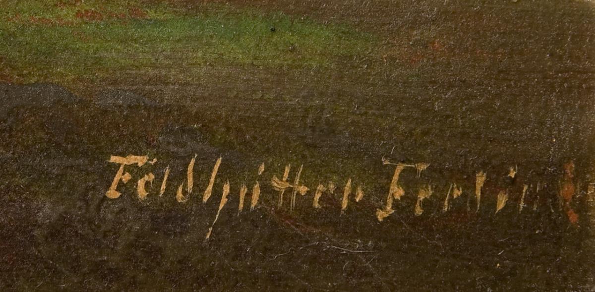 Feldhütter, landscape painter. Pupil of Julius Lange. Preferred motifs from the mountain world of Bavaria, Tyrol and Switzerland, always in a romantic mood. Regularly represented at German exhibitions * partner auction Bergmann.
