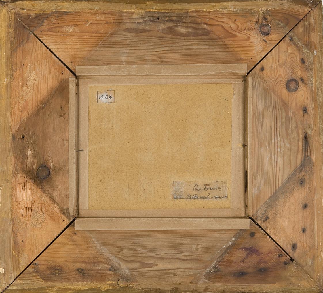 Inscribed on the reverse. Wide heavy gilt stucco frame.