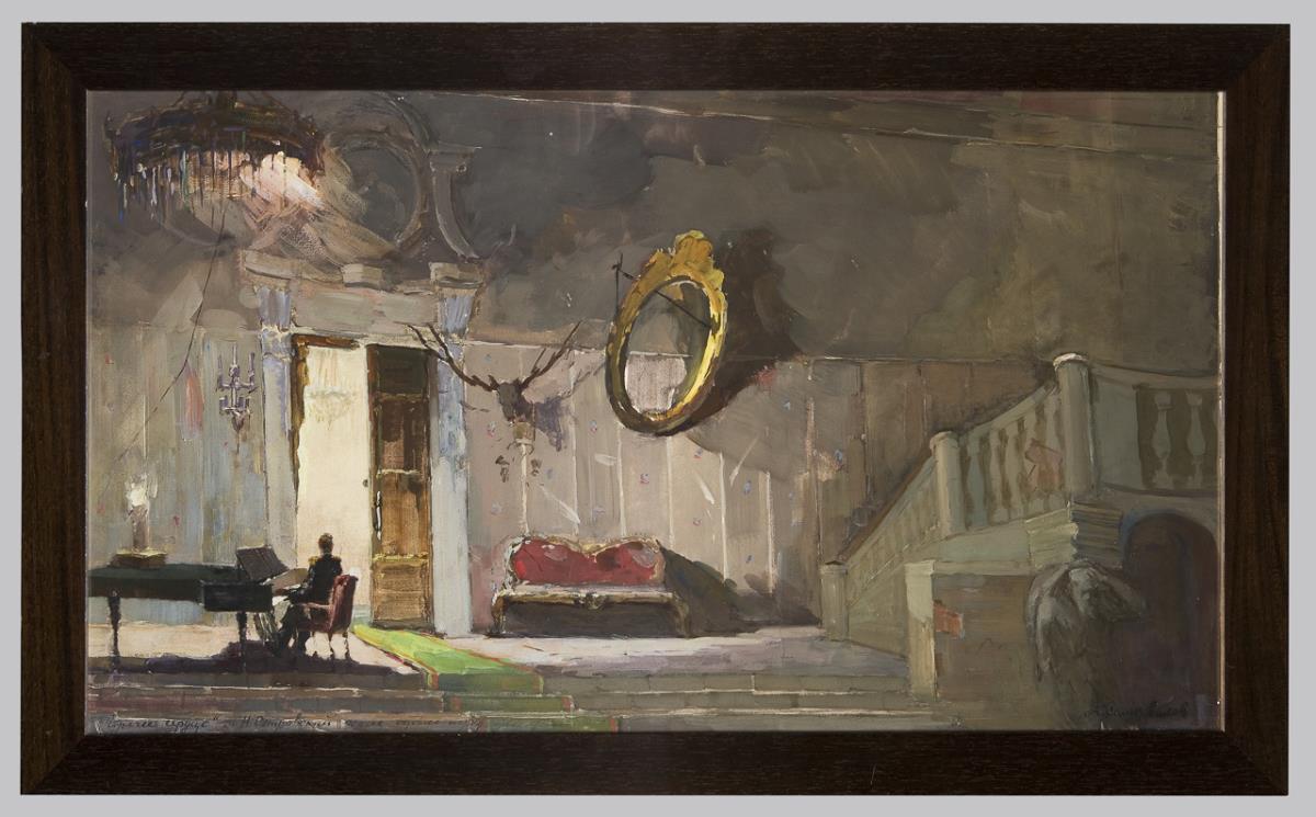 Scene from "A glowing heart", play by Alexander Ostrowski. First performed in Moscow and Saint Petersburg in 1869. Inscribed in Cyrillic. As new glazed frame.