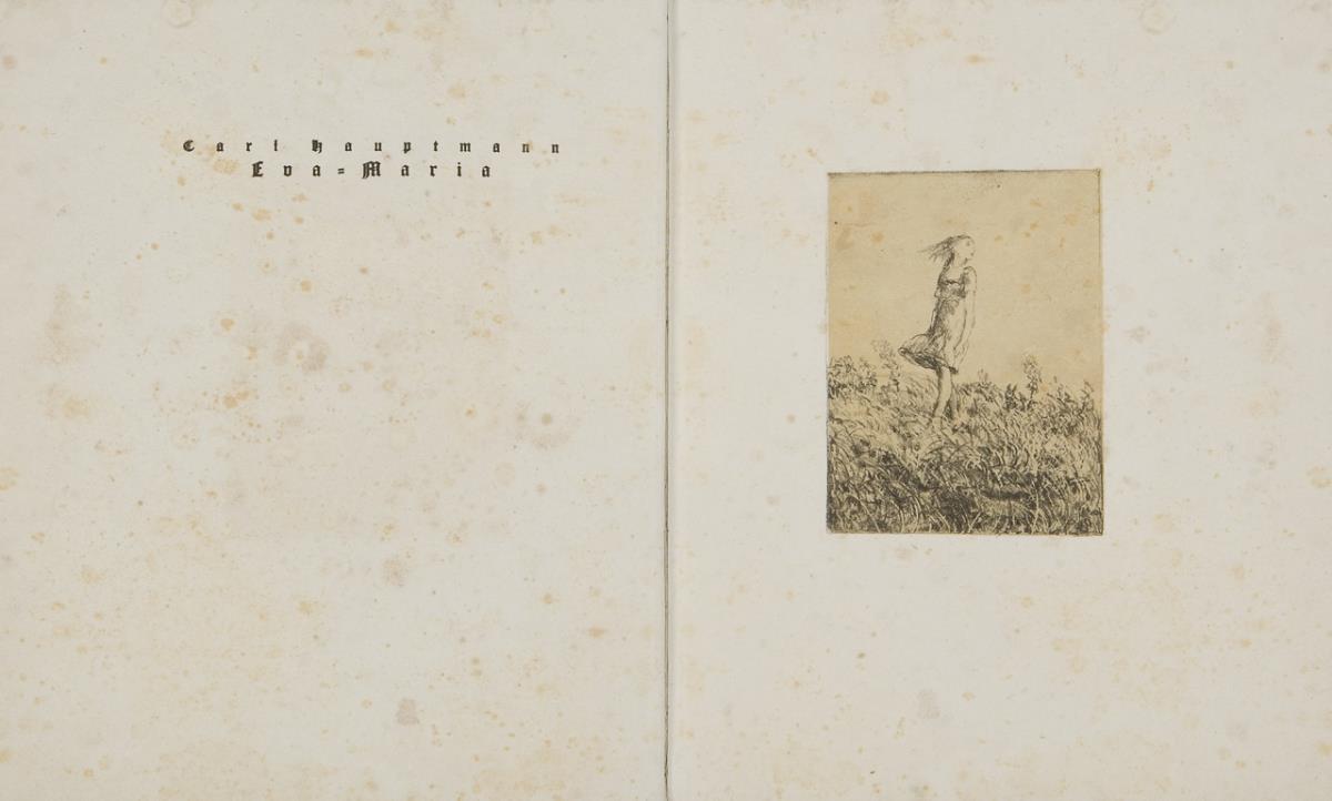 A Legend by Carl Hauptmann. Illustrated by Erich Büttner (1889-1936). Numbered copy: 141/150. signed by the author and artist in the imprint. Printed on untrimmed laid paper. 16 pages, 8 lithographs on plates. Half vellum binding. Stick stained.